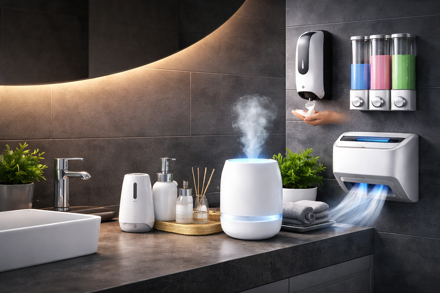High Speed Hand Dryer High-speed 1000W stainless steel hand dryer with automatic sensor technology for quick, hygienic drying in just 10–12 seconds.Buy Nowup to 50%Aroma DiffuserAutomatic fragrance diffuser with programmable timer and stainless steel refill bottle for long-lasting, consistent scent distribution.Buy Nowup to 50%Manual Soap DispenserWall-mounted manual soap dispenser with modern design for convenient, hygienic liquid dispensing in bathrooms and kitchens.Buy Nowup to 50%